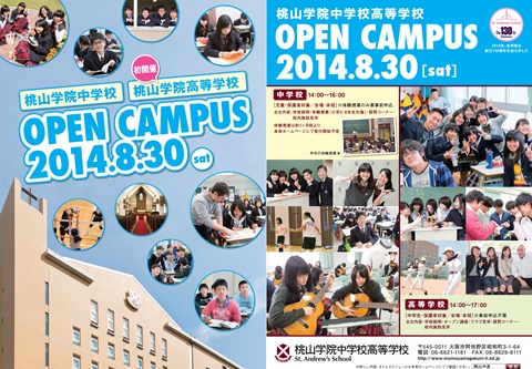 2014年8月30日(土)の14:00から桃山学院高等学校のオープン・キャンパスを初開催いたします。